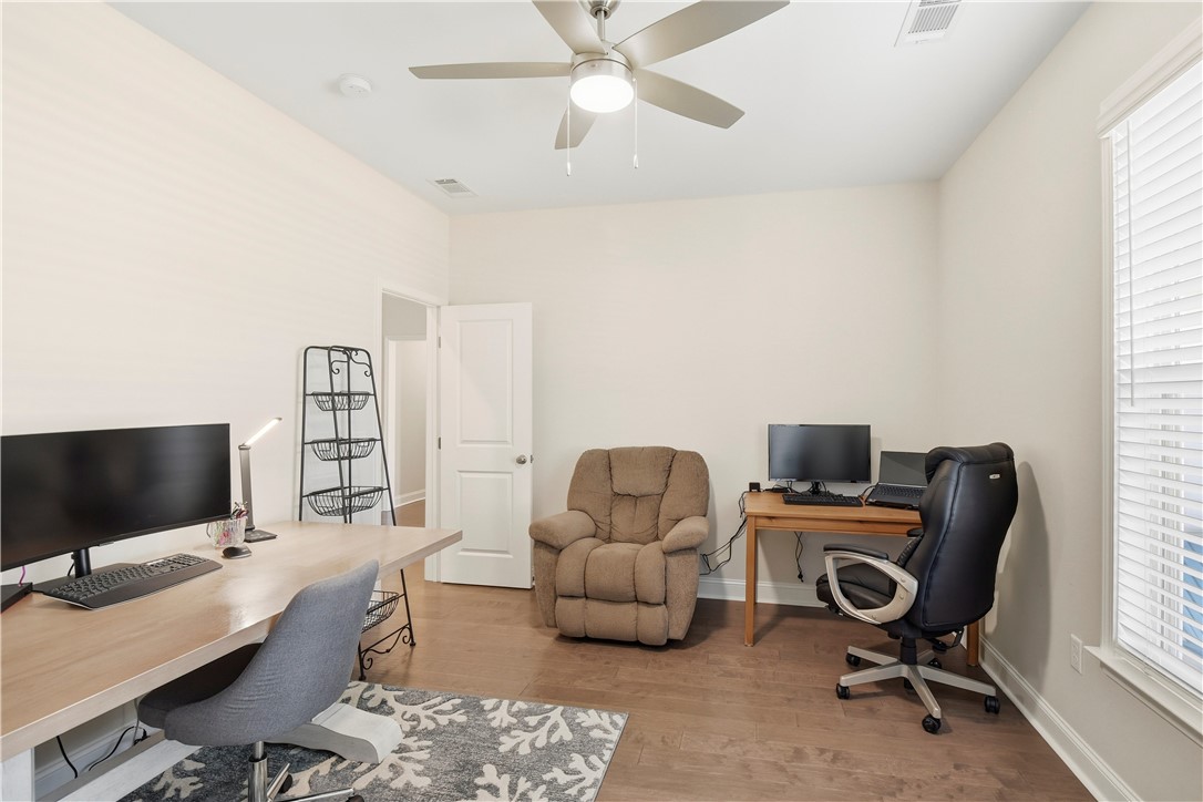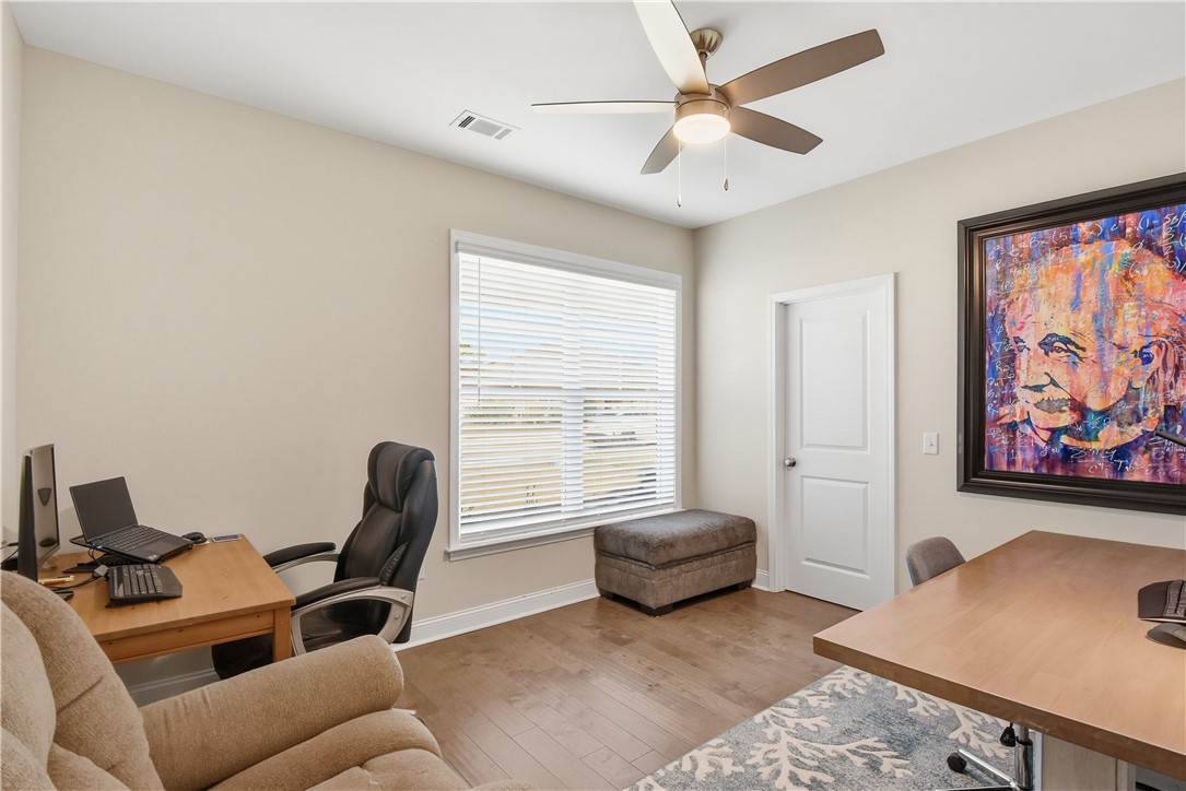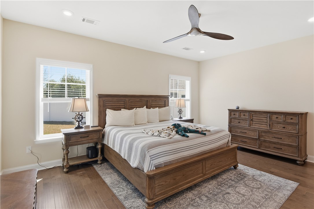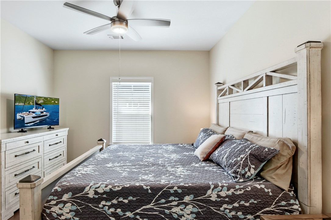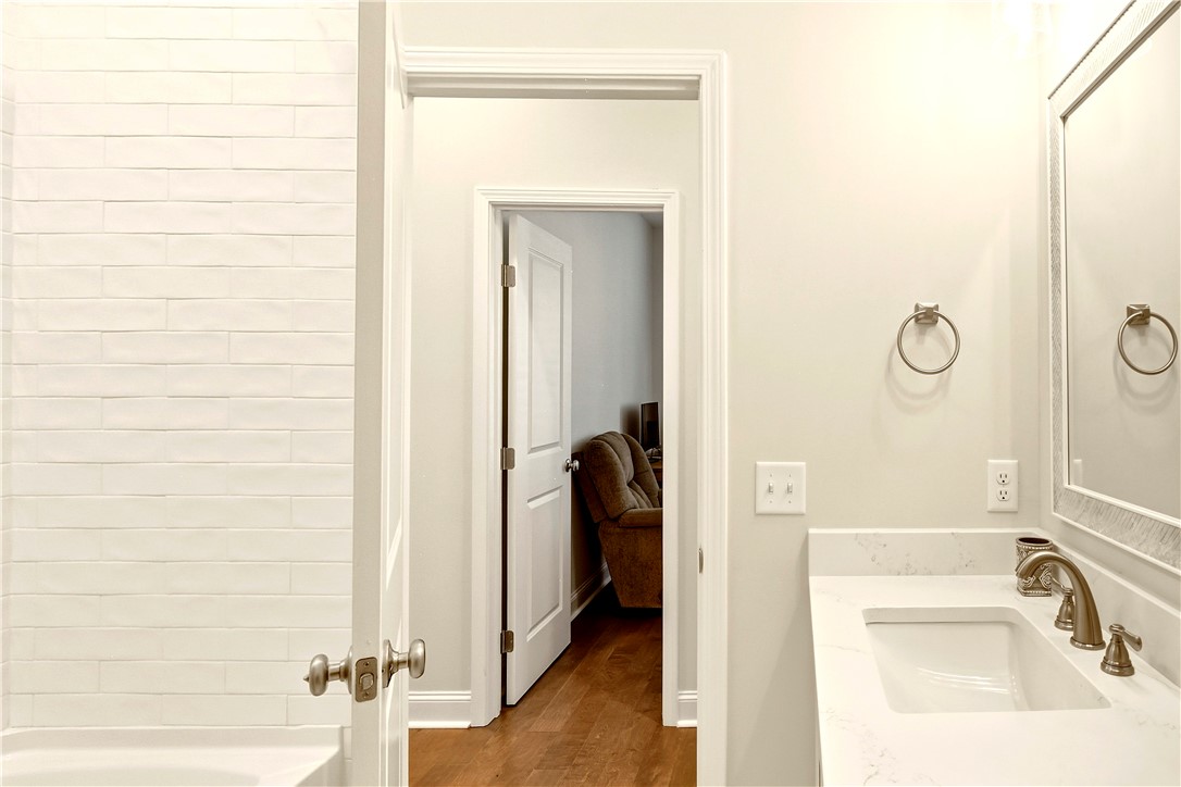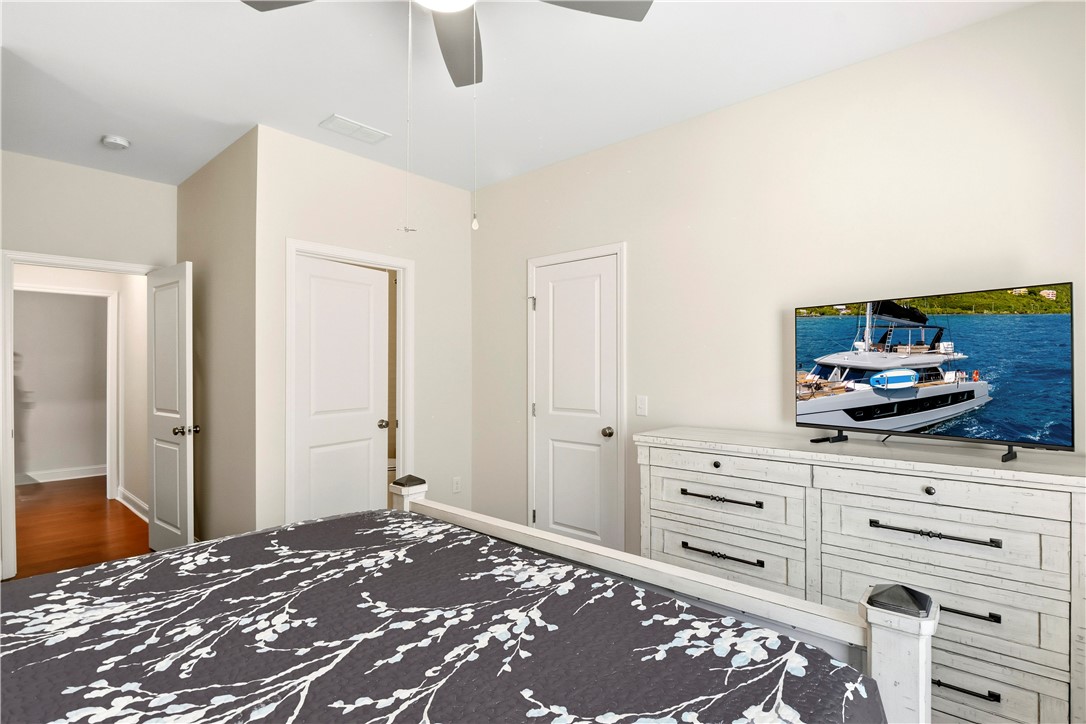 The layout delivers flexibility and privacy. The primary suite features a walk-in shower, separate soaking tub, private water closet, double vanities, and custom-designed closet. A secondary bedroom includes its own en-suite bath -- ideal for guests or extended family. Two additional bedrooms share a well-appointed hall bath, and every bedroom offers a walk-in closet for exceptional storage. A convenient half bath serves the main living areas.
